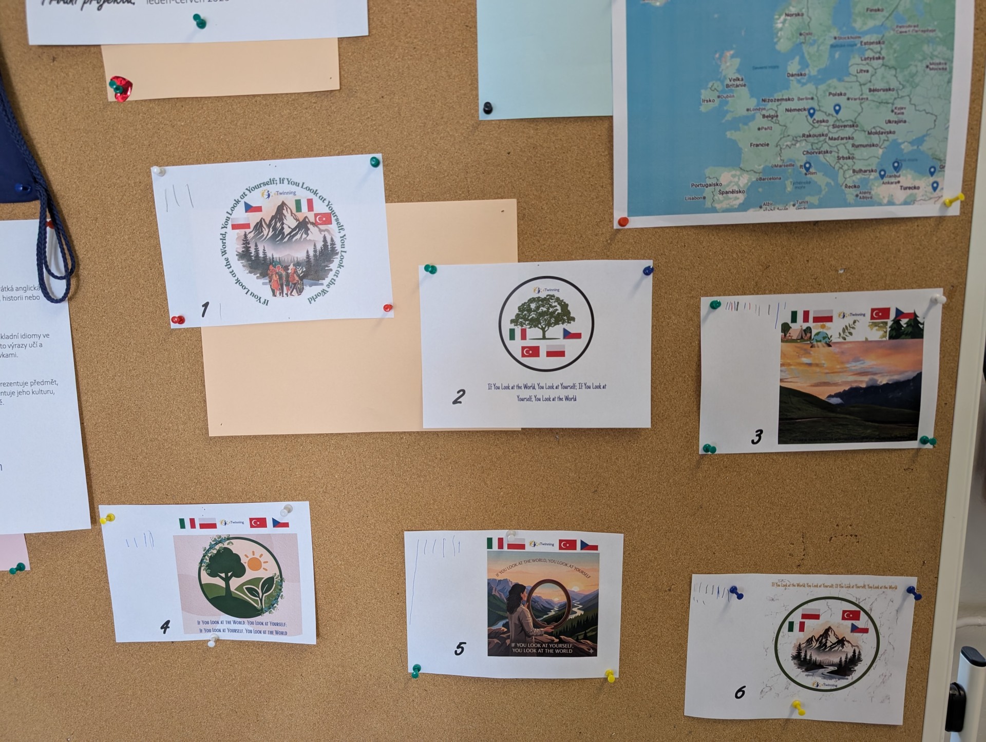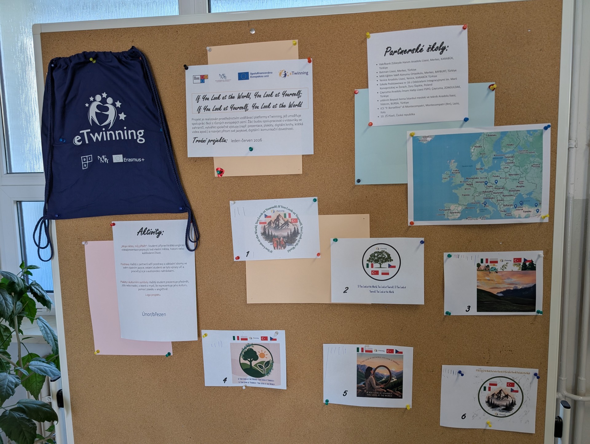 Žáci VII. B se ve 2. pololetí školního roku zapojují do mezinárodního online projektu pod názvem If You Look at the World, You Look at Yourself; If You Look at Yourself, You Look at the World. Spolupracují s vrstevníky z Itálie, Polska a Turecka na bezpečné platformě Twinspace. Cílem projektu je podpořit studenty v procesu sebepoznávání, sebeuvědomění a zkoumání vlastních osobních hodnot, posílit kreativní myšlení studentů, jejich digitální gramotnost, spolupráci a kritické myšlení.